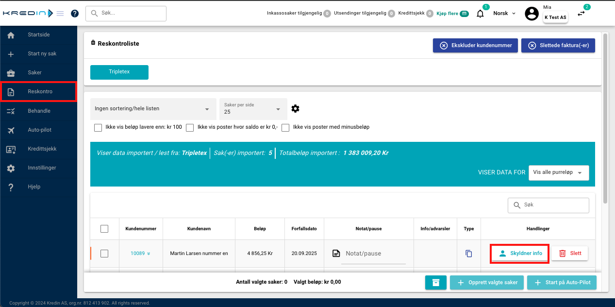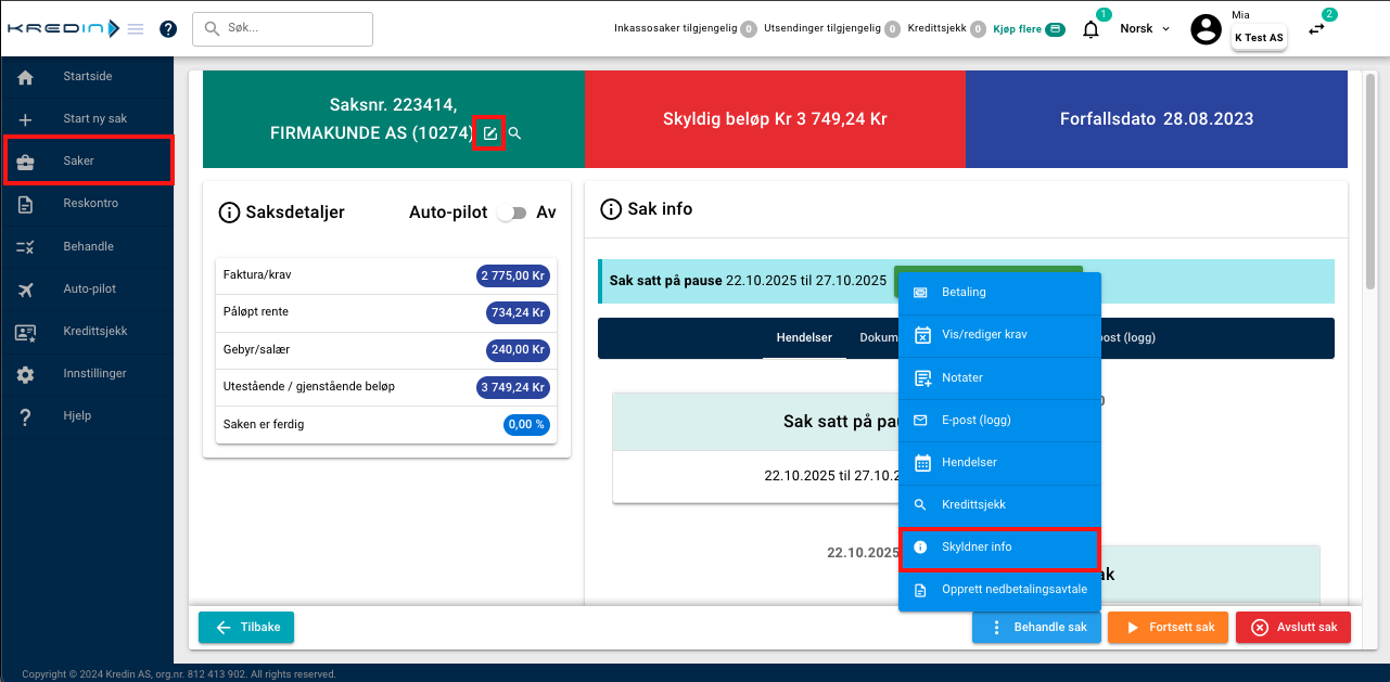 Du finner skyldnerinformasjon inne i hver enkelt sak ved å klikke på “Skyldnerinfo”.