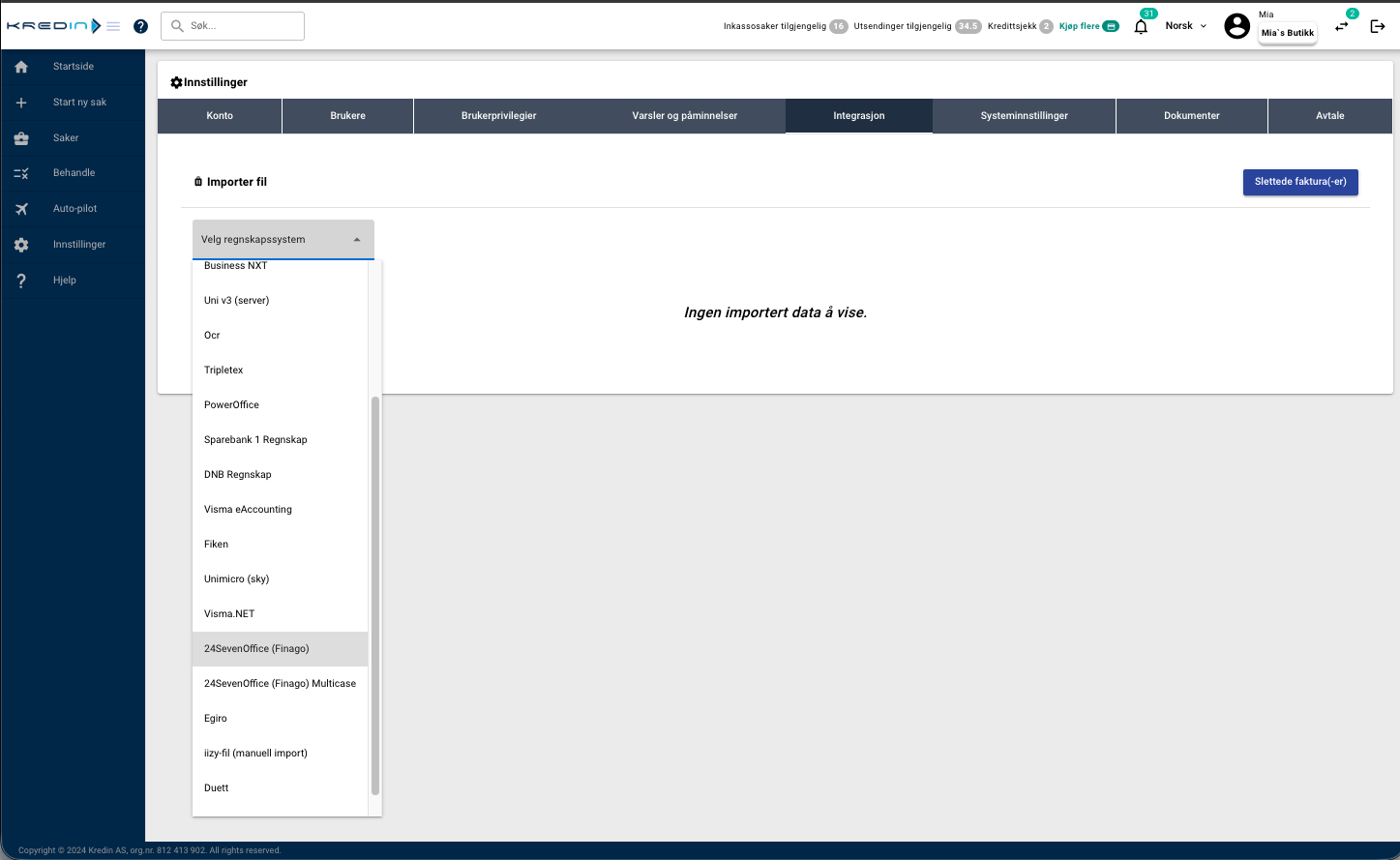 PowerOffice har en unik funksjon som gjør at du kan importere rentenota direkte til Kredin, slik at du kan kreve inn påløpte renter fra forfalte krav som er betalt for sent.