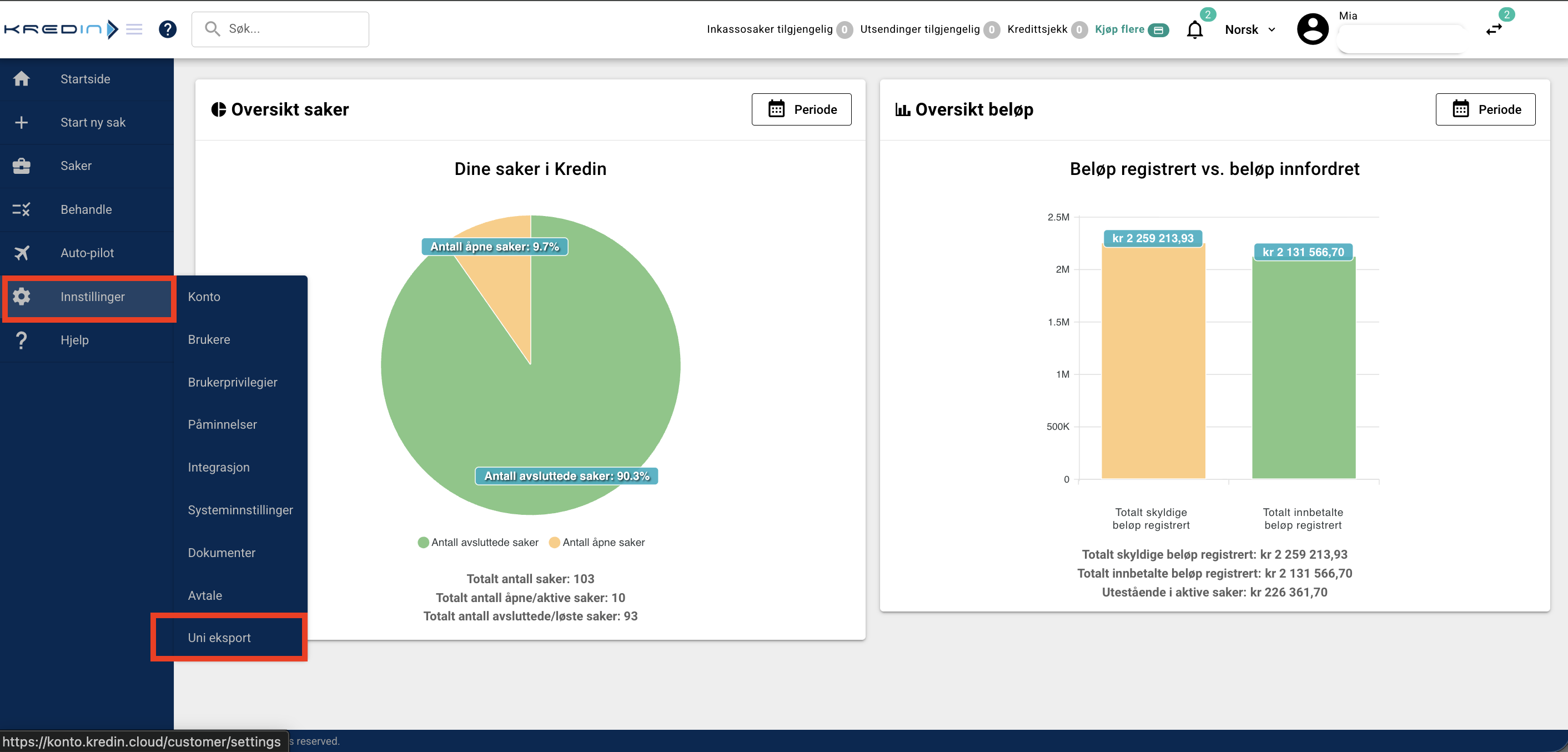 Har dere KID på fakturaene, vil det meste gå automatisk via inkassosentralen til Kredin, og saker oppdateres/lukkes fortløpende.