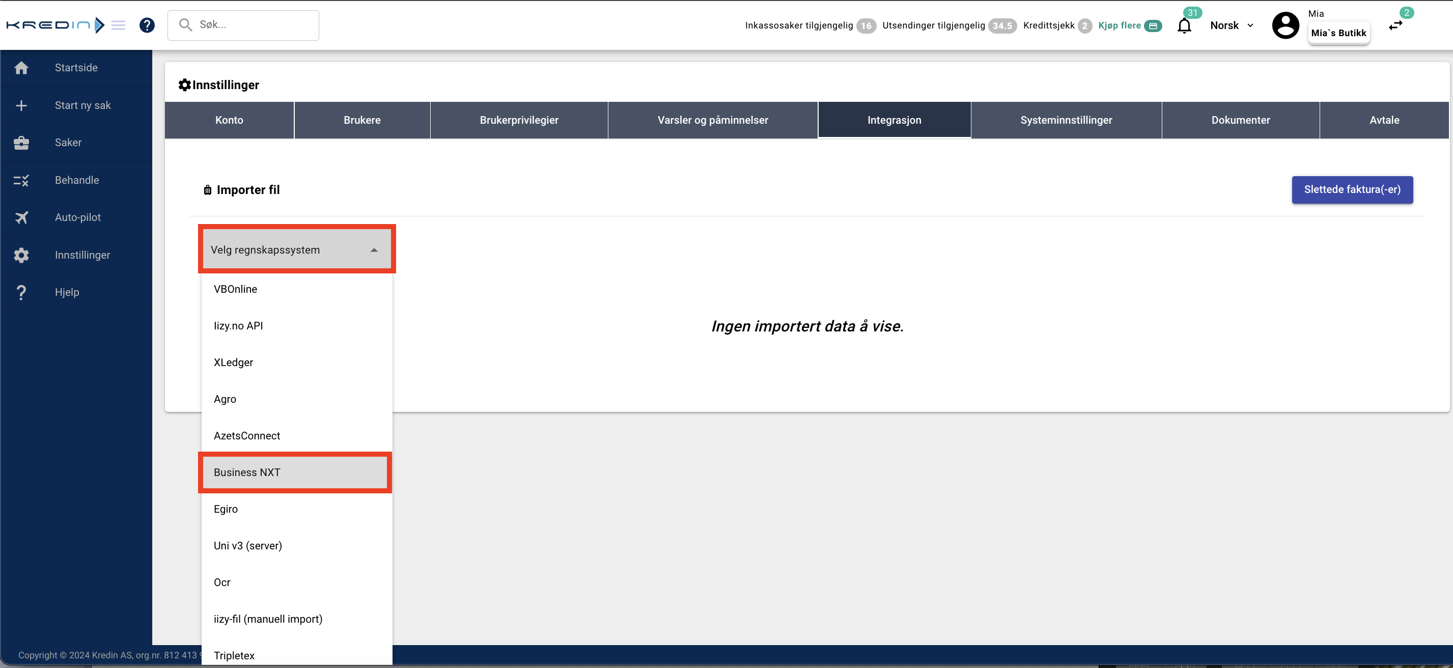 Gratulerer! Du speiler nå åpne poster fra Visma Business NXT direkte inn i Kredin, og kan starte med å sende saker, enten ved å benytte vår autopilot funksjon eller starte saker manuelt.